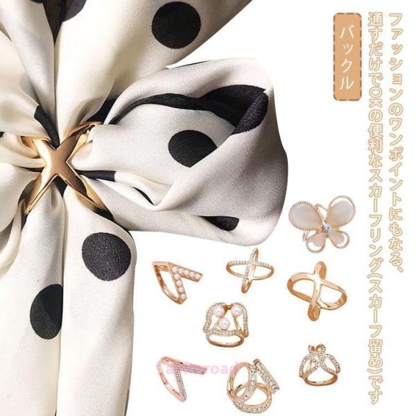 スカーフリング 2点セット バックル パール ラインストーン スカーフ留め ゴールド スカーフ ストール ピン リボン おしゃれ ブローチ トリプルリ
