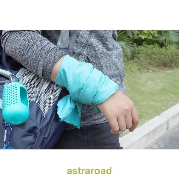 スポーツやアウトドアに持ち運び便利なマイクロファイバーの冷却タオルです。