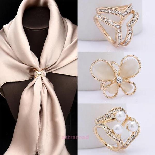 スカーフリング 2点セット バックル パール ラインストーン スカーフ留め ゴールド スカーフ ストール ピン リボン おしゃれ ブローチ トリプルリ
