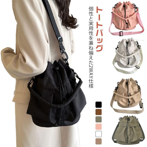 巾着バッグ レディース 2WAYバッグ トートバッグ トートバッグ バケツ型バッグオックスフォードバッグ 斜めがけバッグ 大容量バッグ ショルダーバッ