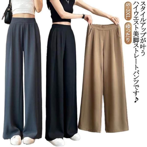 チノパンツ ハイウエストパンツ レディース ロングパンツ ズボン 長ズボン ワイドパンツ パンツ ウエストゴム スリム ゆったり きれいめ ワイドパン