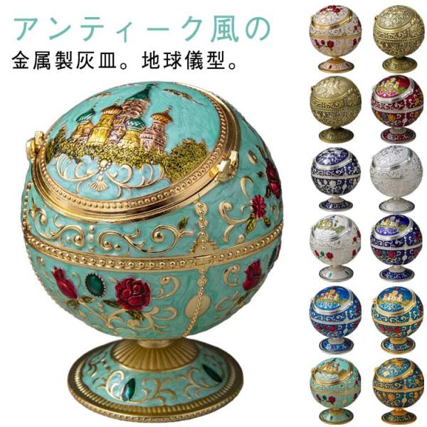 地球儀型 灰皿 iqos灰皿 ローズ柄 屋外 飲食店 灰皿 ふたつき はいざら レトロ アンティーク調 金属製 アイコス 大容量 おしゃれ 高級 卓上