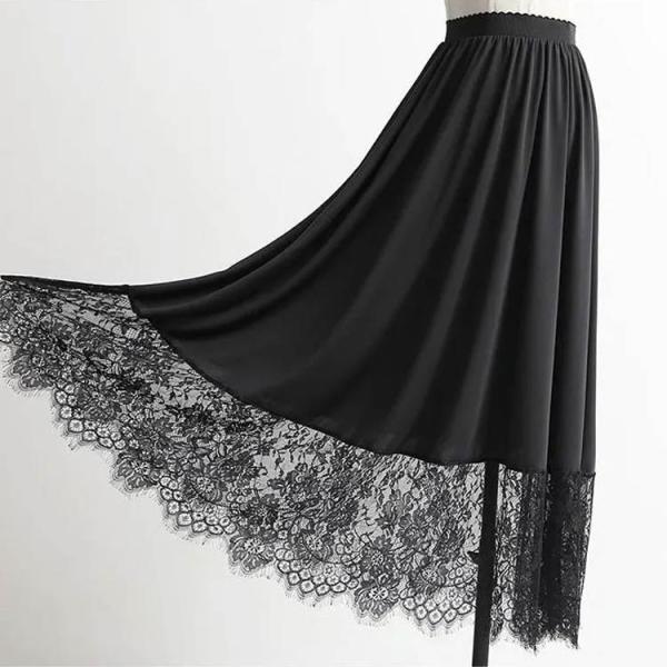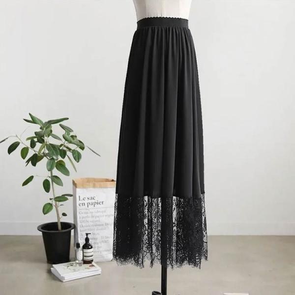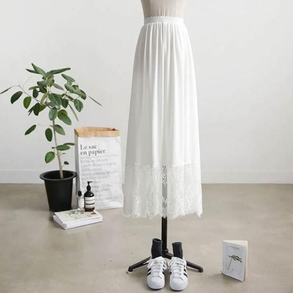 ペチコート きれいめ ロング レース 裾レース付き インナー マキシ丈 黒 ガールズ 裾 見せ 白 重ね着 インナー ホワイト ゆったり 大人 スカー