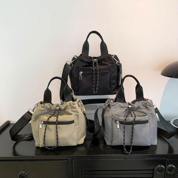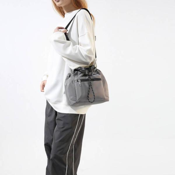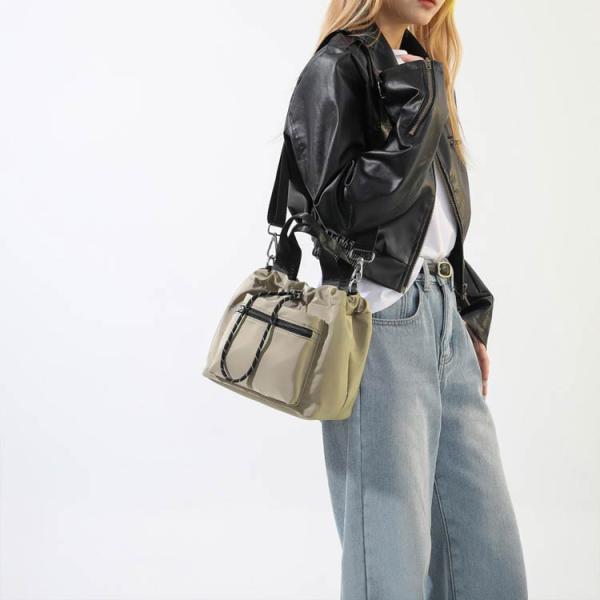 巾着 斜めがけ バッグ フロントファスナーポケット ショルダーバッグ 撥水 ショルダー 巾着バッグ トートバッグ レディース フロントファスナーポケッ