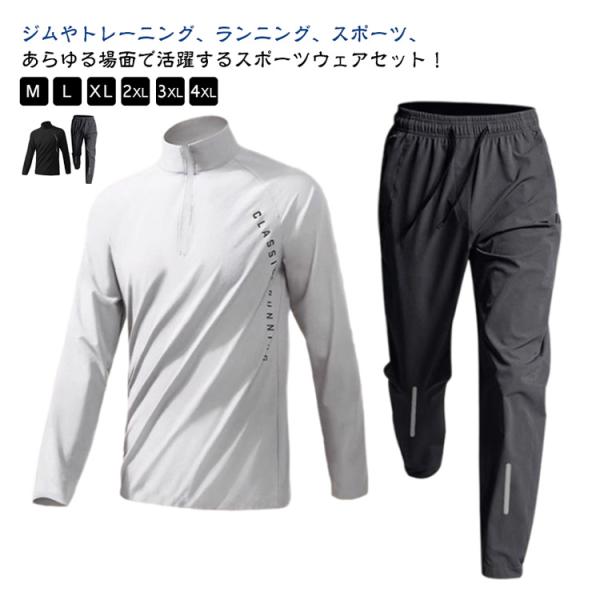 メンズ 上下セット 春 トレーニングウェア 長袖 セットアップ スポーツウェア 吸水速乾 接触冷感 ロングパンツ ジャージ ジムウェア 運動着 ランニ