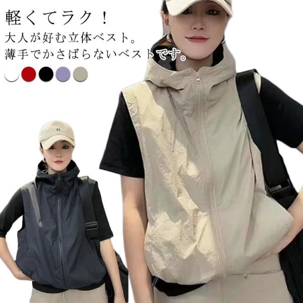 前開き ベスト ノースリーブ ベスト 涼感 速乾 パーカー アウトドアベスト レディース フード付き アウトドア 夏 大きいサイズ 作業着 軽量 通気