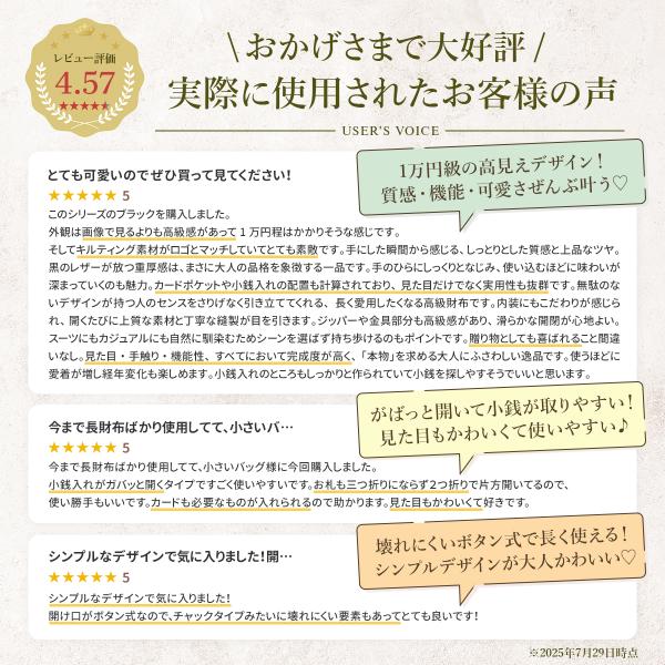 こちらは高級感あふれるキルティングデザインが特徴の三つ折り財布です。デザインだけでなく、機能性も追求されており、デイリーから旅行時のサブ財布としても活躍します。