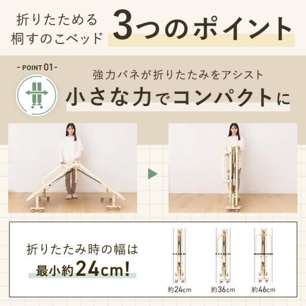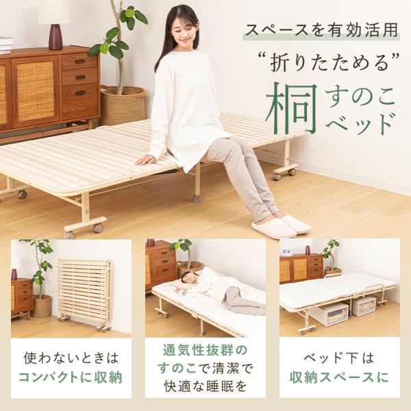 【公式店】 折りたたみベッド すのこベッド シングル 収納式 桐すのこベッド AX-BF707 無垢 フラットベッド 高さ調節 2段階 ベッドフレーム