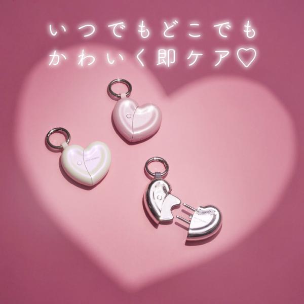 いつでもどこでもかわいく即ケア かわいいハート形チャーム。実はカッサとダブルポインターの2つの機能が1つになったチャーム型美顔器です。