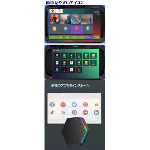 新製品 業界初高画質8Kメディアプレーヤーと8K高性能パソコンが一つになりました。最新OS Android11で世界最大ののアプリ数で多機能パソコン最新のAndroid12OSを搭載し使い方も簡単に!!Google PLAYストアーから数千万の人気のアプリもダウンロードし人気のネットTV、文書オフィス、人気のゲーム、動画、音楽、Skipe、翻訳、テレビ電話、メール、画像制作、設計、地図など高画質で楽しめます。最近は料理やエクササイズの動画も人気です。もちろん、当社のIPカメラやスマートソケットで家電遠隔操作や防犯も簡単。テレーワークや会議、教育、生放送配信にも便利当店別売のWEBカメラを使用すればSkype、Line、Facetime、Facebook、Zoom、、WeChat、Dingtalk、ハングアウトなどでビデオ会話が実現可能となります。オンライン会議、ネット授業、ゲームなどのテレビ生放送、在宅勤務に便利です防犯用PCとしても当店の色々なIPカメラやIPドアホンは一つのアプリででいつでもどこでも別の数か所の同時防犯監視や動体警告も可能です。別売ワイヤレスゲームパッドで高速かつスムーズな人気のゲームを楽しめます。今ならなんとワイヤレスマウスpadミニキーボード試供品付