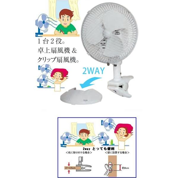 便利な1台2役 卓上扇風機 18cm クリップ式扇風機