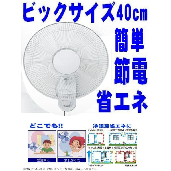 壁掛け扇風機 ビッグサイズ 40cm 5枚羽 手元ひも操作 壁掛けメカ扇風機 簡単操作 節電 省エネ セール akiw424
