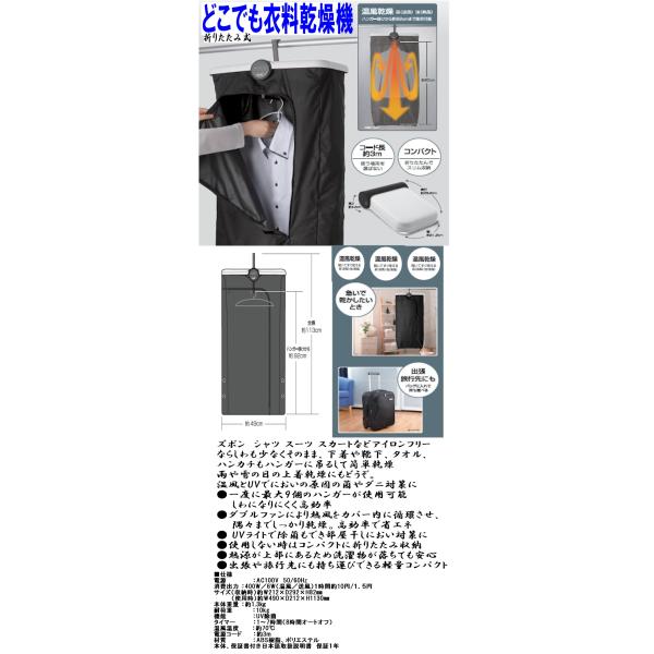 衣類乾燥機 どこでも 温風ヒーター コンパクト折りたたみ 部屋干し 旅行 UV除菌 ズボンプレス 洗濯乾燥機にも トコジラミ対策