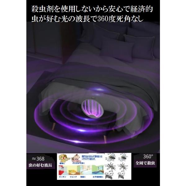 軒下やお店、ペット用、キャンプ、草むしり・・・とっても便利な充電式で業務用としても使えるハイパワー3KVの殺虫器です。殺虫剤を使わないので環境にもやさしく、USB充電式経済的に自動でも手動でも使えます。最近は、蚊やハエが媒介するウィルスや細菌が問題になっています。殺虫剤の効かない蚊も増えているとか。蚊やダニを介して感染する病気は、マラリアや日本脳炎、デング熱、黄熱、ウエストナイル熱などがあります。最近の温暖化により日本内の蚊は冬でも生きており殺虫剤ではなかなか死なない強い蚊も現れているようです。また最近は海外からの熱帯地方の新型の蚊も発見されています。大容量電池内蔵で長時間運転可能さらに軽量でたったの192g。ハンドル部分が回転収納タイプになりました。外出時やアウトドア、キッチンや寝室、応接間、玄関でも便利です。又、雨の当たらない軒下でもOKでとても便利です。もちろん蛾やゴキブリもひっかかることもあります。
