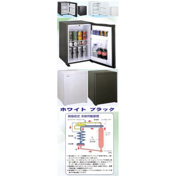 40L 冷蔵庫 無雑音 静音 ホテル仕様冷蔵庫 振動雑音ノンフロン消音熱吸収式 ホワイト ブラック 低消費 ml40