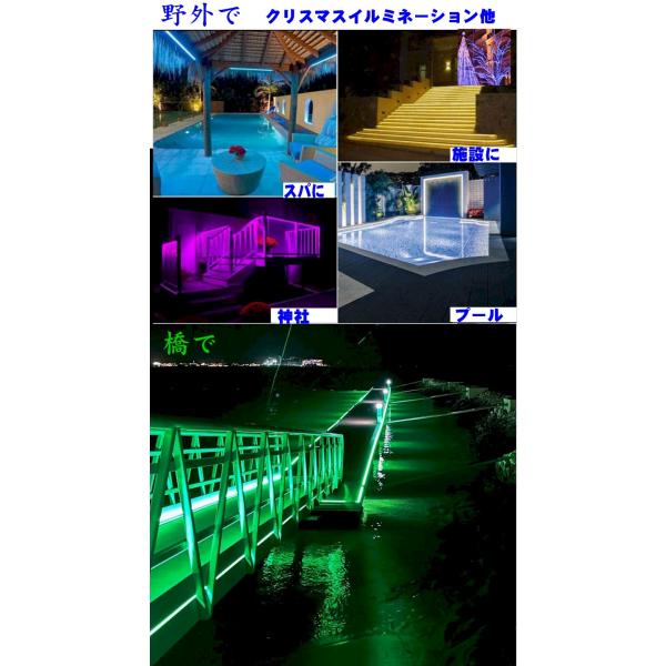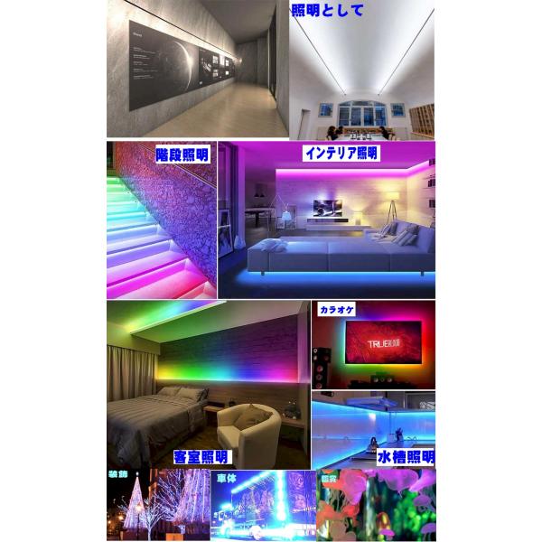 防水仕様IP65ですので野外でもご使用いただけます。単体LEDに比べて最新の低消費高輝度のRGBのチップ3個を搭載し通常の9倍の明るさで省エネで最大30000時間対応しています又も20BITD/Aコンバーター搭載で1600万色を色と明るさ再現してます。装飾照明お間接照明、インテリア照明、補助照明としてそして色々な施設でご使用いただけます最近は赤青での紫又、長い場合はハサミでカットしたりテープなので貼ったりバンドで留めてご使用いただけます。上から防水黒テープなどで隠して広告文字なども可能です。低消費20WACアダプター付きですが直接接続車載やバッテリーDC12Vでもご使用いただけます。