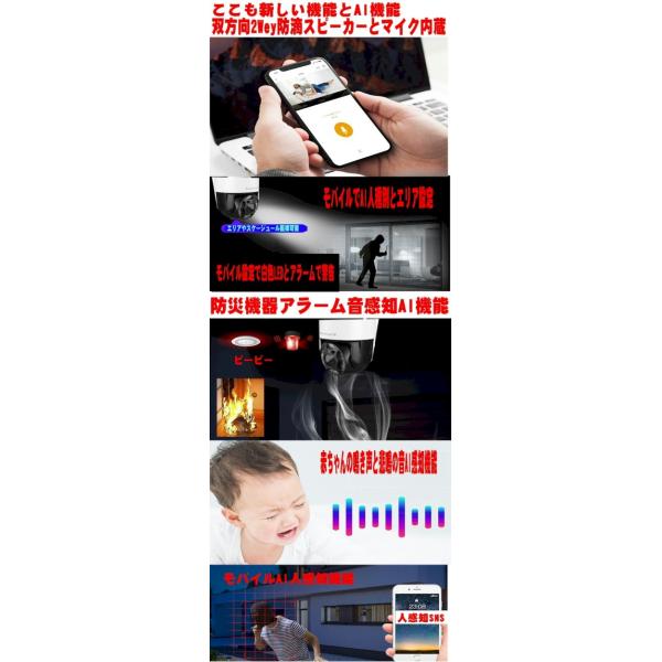 送料無料新発売 業界初2.7K高画質エリア人検知AI設定対応防災機器火災アラームや赤ちゃん鳴き声検知機能光学5倍デジタル50倍フルHDフルハイビジョン 高解像度高暗視距離像度 白色LEDと暗視遠赤外LED対応で夜間のカラー化、光警告音、双方向通話も可能で来客のお客との通話もできど〜もカメラとしても使え頑丈な形状な理想型 小型化卵型のデザインでIP66の防塵防滴構造でどんな環境にも対応しま本格的な防犯システムは高価ですしケーブル設置も大変でHDDの交換やバックアップも大変ですよね。いざと言う時にHDDレコーダー本体を破損されたり故障したりの話も多いです。それに一般のIPカメラだけでは監視はできても常に録画されないので証拠として記録が残っていないのが致命的です。市販の最大256GBマイクロSDを使用して本体に装着して連続録画やスケジュール録画を本体に常に長時間記録され過去の録画を再生さらに、お手持ちのパソコンやスマホでいつでもどこでも遠隔操作して野外で監視録画。防犯だけではなく動物観察やカメラの前に温度や湿度計を置いてビニールハウスの野菜や果物などの発育状態、水温計で魚の管理、プールや工場、温泉の温度管理や監視などにも便利です。