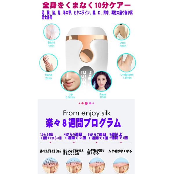 世界23万台のIPL脱毛器が新しくなって新発売!QuoPro 世界的に主流になりつつあるクォーツIPL脱毛はきレーザー式に比べて安全でヘッド交換も不要で長寿命で安心で経済的!!2020年最新式男女兼用 ハイパフォーマンス IPL光脱毛器小型軽量で 脱毛サロンより早くリーズナブルで自宅でお手軽に10分全身ケア!サロンと同じ8週間プログラムで簡単最新IPL脱毛。お肌に優しいクオーツIPL技術脱毛器は最新IPLパルス光脱毛技術と回路を採用して毛根に働きかけ弱らせて毛根が自然に脱落し徐々に生えにくくし使うほど滑らかなお肌になりいつでも自信を持って心も体も美しく5段階照射&2モードお肌の肌タイプ・毛質に合わせて、自動5階段のパワー調整可能自動モードは楽々腕腿など大面積に手動モードはデリケートな部分や顔や脇など小面積に。一台あれば、ご家族と一緒に使用できます。1x3?の照射面積で広範囲で照射できるから時短で自動脱毛。 マイコン搭載で温度センサーや皮膚接触センサー搭載で表示はショット残数、動作状態、照射レベルなど表示。脱毛器は脱毛サロンと同じ業務用パワーなんと19jで顔から足先まで自宅で気軽に脱毛可能 男性の髭の脱毛太く濃い男性の髭脱毛にもご使用可能