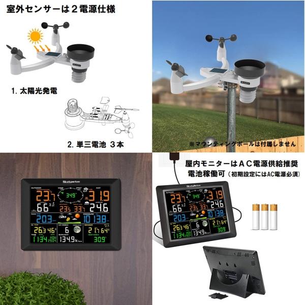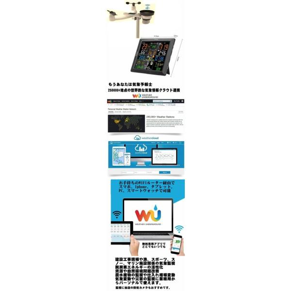 ウェザーステーション 気象計セット ワイヤレス スマート 多機能 クラウド 風速計 雨量計 気圧計 UV計 温度計 湿度計 大画面 スマホ iPhone ソーラー