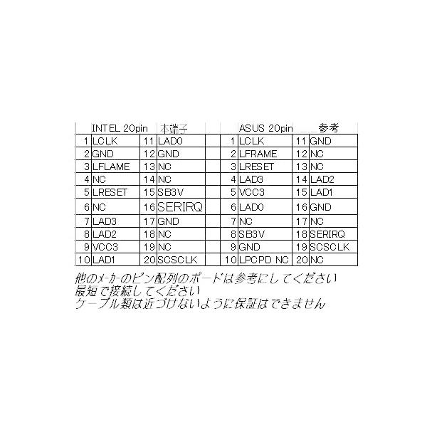 MSI ASUS GIGABYTE INTEL対応 全品動作確認済み GIGABYTE INTEL 20pin MSI ASUS 14-1pin端子確認とBIOS設定対応お願いします。他は端子表参考