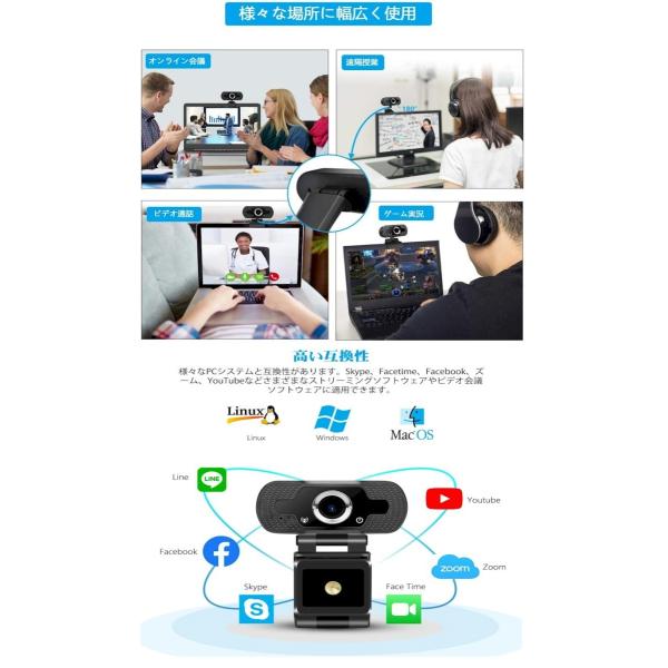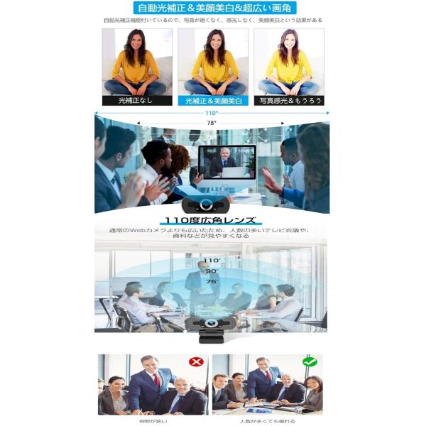 Webカメラ テレワーク 広角 フルHD 1080P ウェブカメラ ステレオマイク 自動光補正 PCカメラ USBカメラ 在宅勤務 ビデオ会議 オンライン授業 教育 生放送