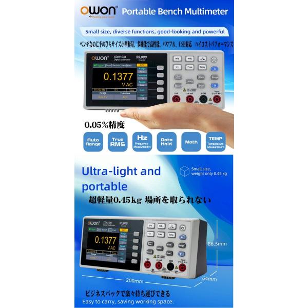 高精度 55000カウント 4桁1/2 真の実効値 RMS ベンチタイプ デジタルマルチメーター ハイコストパフォーマンス 多機能 データーロガー USB付 XDM1041 OWON