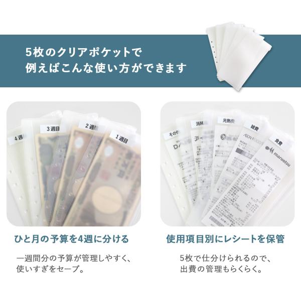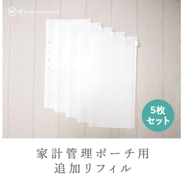 家計管理ポーチ用リフィル5枚セット クリアポケット 家計管理ケース マルチケース パスポートケース 財布 家計 仕分け財布 お金 仕分け 定形外郵便送料無料