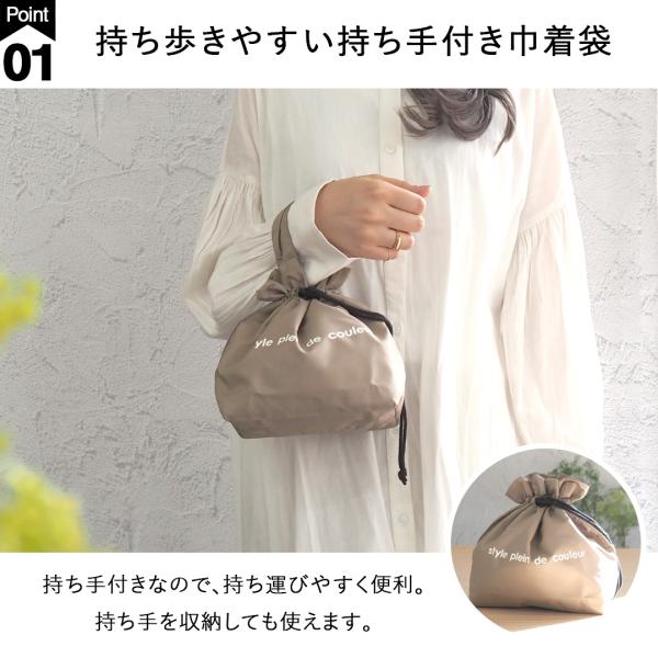 おしゃれで使いやすい、巾着袋型のランチバッグ。