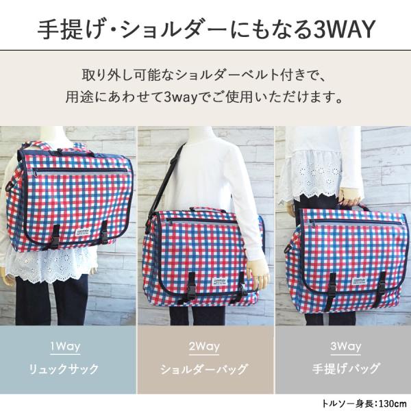 手提げ、ショルダーバッグと、用途に合わせて3WAYでご使用いただけます。