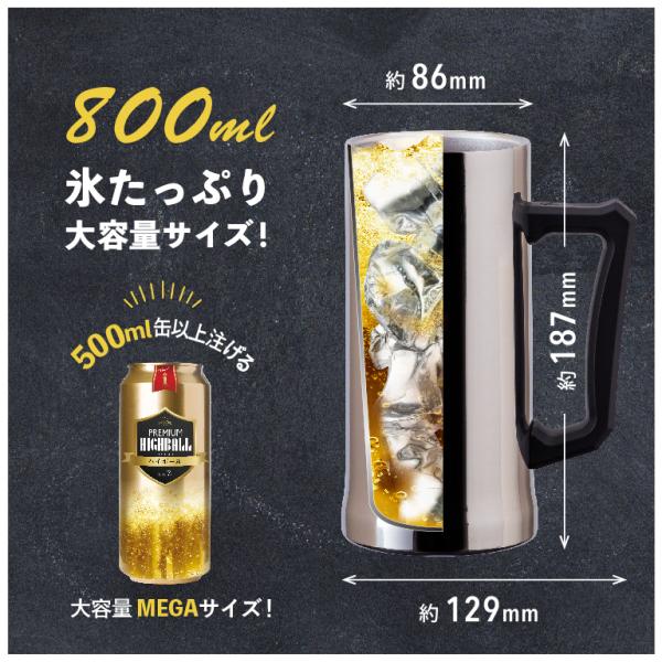 ビールジョッキ 800ml 保冷 真空断熱 ステンレス タンブラー 大容量 メガサイズ ミラー仕上げ なめらか飲み口 ハイボール シルバー シンクス ASJ-802MR