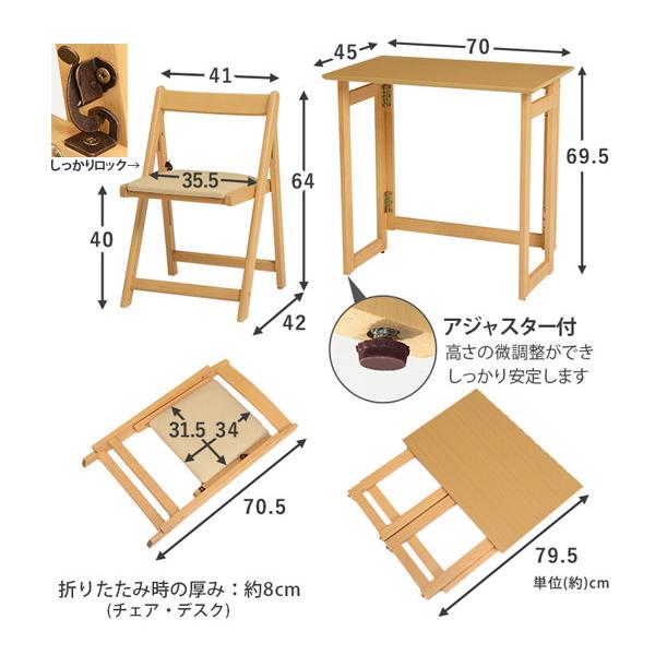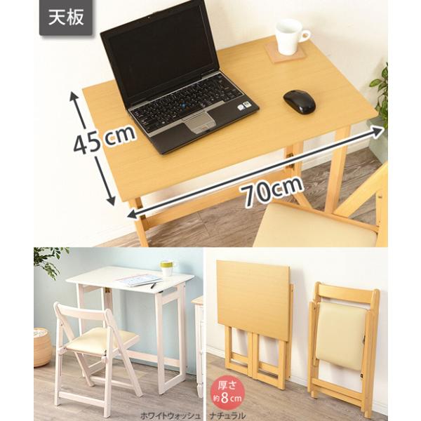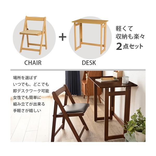 机 椅子 2点セット 木製 折り畳み デスク チェア セット 幅70cm パソコンデスク テレワーク コンパクト収納 ナチュラル