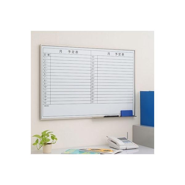 スケジュール ボード 90cm×60cm 月次予定表 罫線入 横書き 軽量 スリムタイプ アルミ フレーム イレーザー ぺントレー 85056