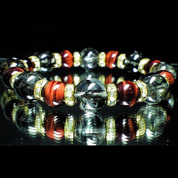 ブレスレット ストーン メンズサイズ ブラッククラック水晶 12mm× レッドタイガーアイ 10mm P6-M-C-1