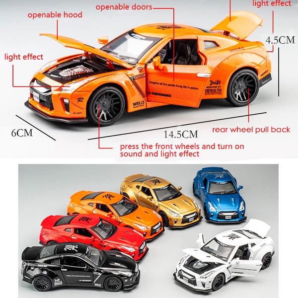NISSAN 日産 GTR R-35 ニスモ NISMO 1/32 ミニカー 全6色 ライト点灯 エンジンサウンド 模型 合金モデル