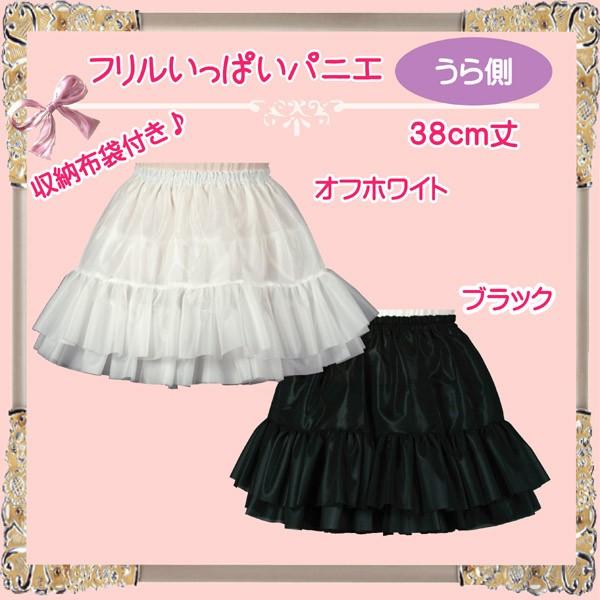 パニエ 38cm おしゃれ ハロウィン ボリューム コスプレ ミニ クリスマス ロリータ かわいい 白 赤 黒 大人用 < フリルいっぱい パニエ 38cm丈 >