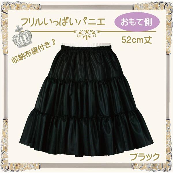 パニエ 52cm おしゃれ フラダンス ボリューム コスプレ ひざ丈 結婚式 ドレス パウスカート ダンス 白 赤 黒 大人用 < フリルいっぱい パニエ 52cm丈 >