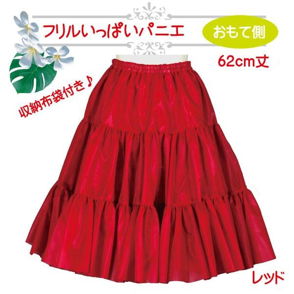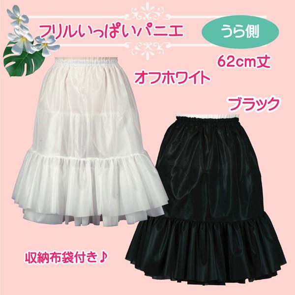パニエ 62cm おしゃれ フラダンス ボリューム コスプレ 結婚式 ドレス パウスカート ダンス ひざ下 白 赤 黒 大人用< フリルいっぱい パニエ 62cm丈 >