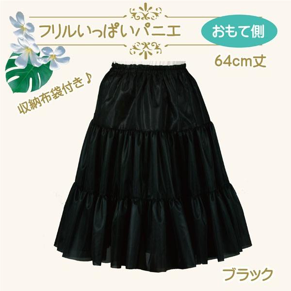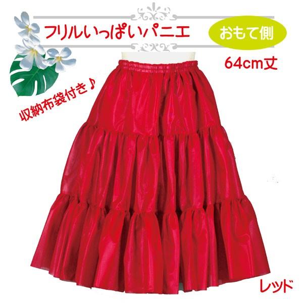 パニエ 64cm おしゃれ フラダンス ボリューム コスプレ 結婚式 ドレス パウスカート ダンス 白 赤 黒 ひざ下 大人用 < フリルいっぱい パニエ 64cm丈 >