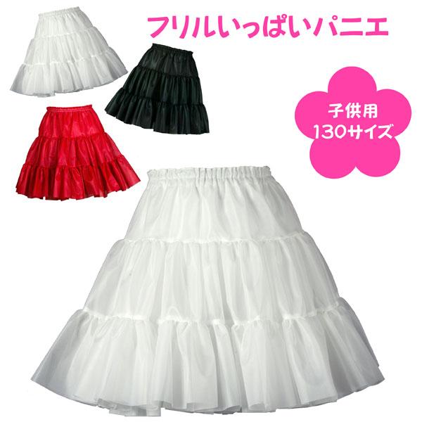 パニエ 子供用 ハロウィン 白 黒 赤 ボリューム フォーマル 卒業 入学 結婚式 フラダンス 発表会 ダンス < フリル いっぱい パニエ 130サイズ 44cm丈 >