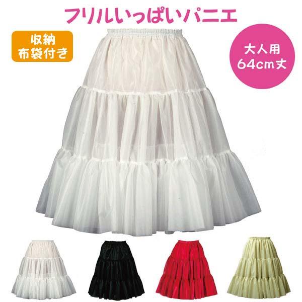 パニエ 64cm おしゃれ フラダンス ボリューム コスプレ 結婚式 ドレス パウスカート ダンス 白 赤 黒 ひざ下 大人用 < フリルいっぱい パニエ 64cm丈 >