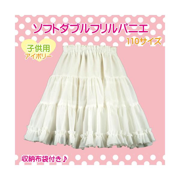 パニエ 日本製 子供用 110サイズ ソフトダブルフリルパニエ♪ ペチコート スカート ワンピース ピアノ 結婚式 お祝い アイボリー ホワイト ブラック 発表会