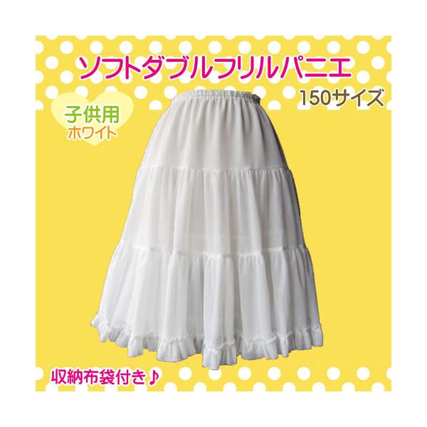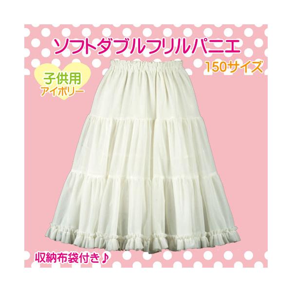 パニエ 日本製 子供用 150サイズ ソフトダブルフリルパニエ♪ ペチコート スカート ワンピース ピアノ 結婚式 お祝い アイボリー ホワイト ブラック 発表会