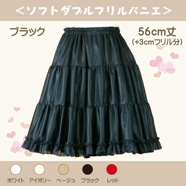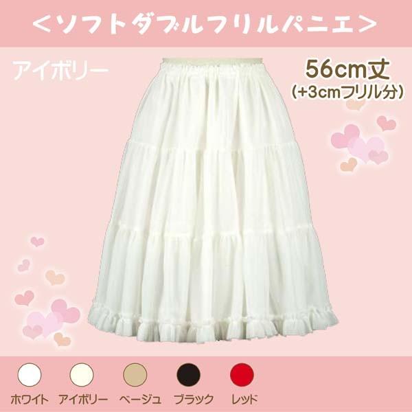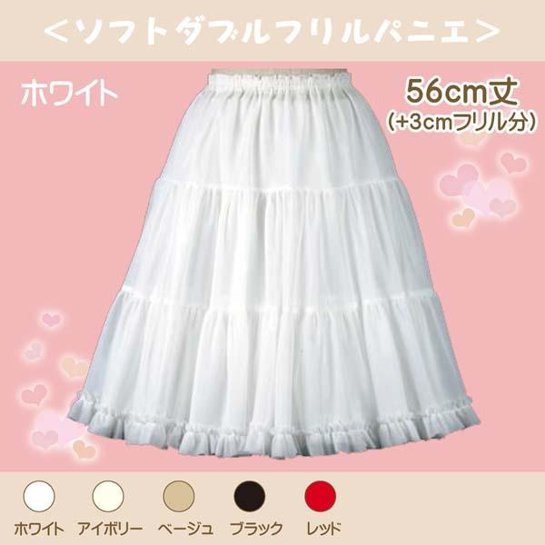 パニエ おしゃれ エレガント ペチコート 二次会 パーティー 大人用 < ソフト ダブル フリル パニエ 56cm丈 >