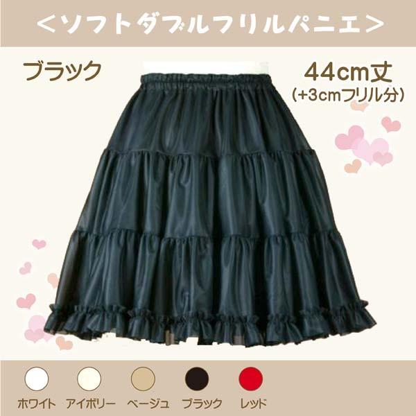 パニエ おしゃれ エレガント ペチコート 二次会 パーティー 大人用 < ソフト ダブル フリル パニエ 44cm丈 >