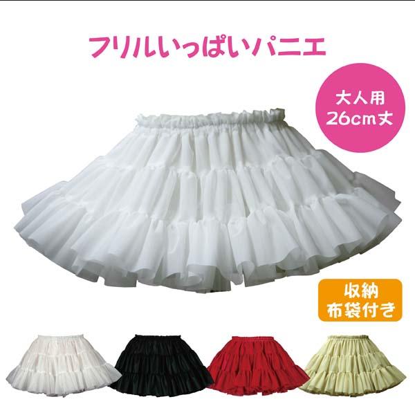 パニエ 72cm おしゃれ フラダンス ボリューム コスプレ 結婚式 ドレス パウスカート ダンス 白 赤 黒 ロング 大人用< フリルいっぱい パニエ 72cm丈 >