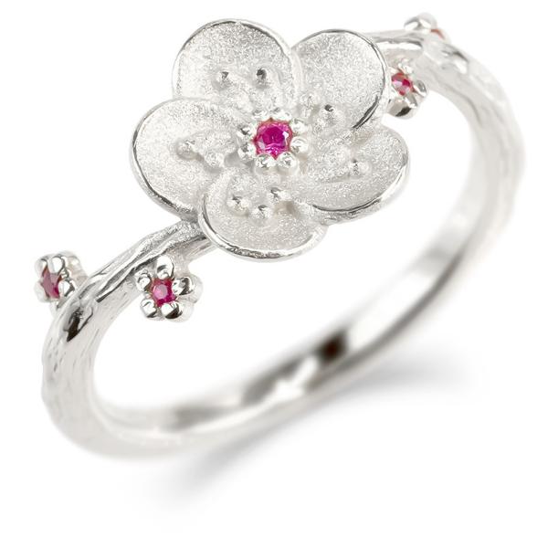 シルバー リング 梅の花 ルビー レディース 指輪 sv925 婚約指輪 安い ピンキーリング 梅 ウメ 花 女性 送料無料 セール SALE