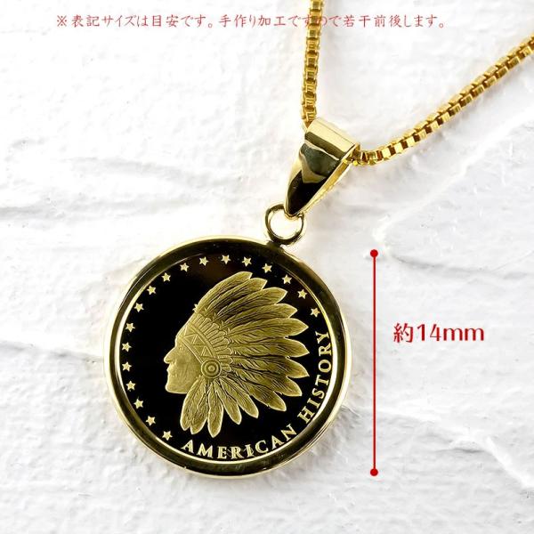 表には誇り高きインディアン・裏には自由と力強さの象徴イーグル、2つの象徴を刻んだリバーシブル金貨ネックレス