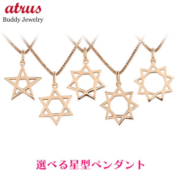 18金 ネックレス トップ レディース 選べる星型 ピンクゴールドk18 ペンダント シンプル 地金 星型多角形 芒星 ラッキーモチーフ 送料無料 セール sale