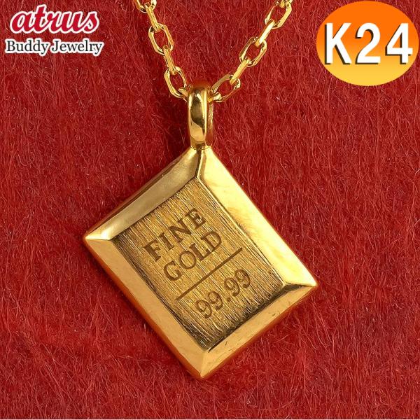 24金 ネックレス 純金 インゴット型 ペンダントトップ 金 ゴールド 24k プレート 小ぶり 華奢 小 チェーン シンプル 人気 男女兼用 あすつく 送料無料 sale