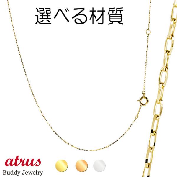 18金 プラチナ ネックレス アズキ レディース チェーンのみ 50cm 選べる材質 イエロー ピンク ホワイト pt850 18k 長あずき 大特価 あすつく 送料無料 人気 SALE